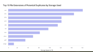Common file types: A research team collecting data from certain applications or instruments may not know how much they have or where it’s all stored. The ability to see data by file extension can inform future research initiatives. This could be as simple as finding all the log files, trace files or extracts from a given application or instrument and moving them to an analytics tool.