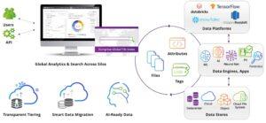 Komprise Deep Analytics Actions gives users the ability to create powerful queries for granular data sets; those queries can then serve as criteria for a Komprise data management plan. Komprise delivers a unified, Google-like search across on-premises and cloud data storage silos, which we call the Global File Index. This allows users to feed custom data sets into automated plans for ongoing tiering or copy into machine learning pipelines. Komprise delivers data tagging through the UI with automated tagging capability through the API, such as from AI/ML applications.