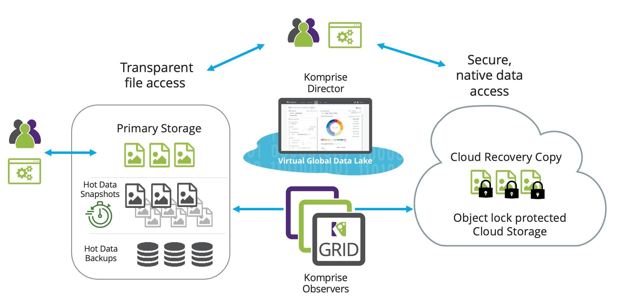 Komprise provides cost-effective protection and recovery of file data. Komprise transparently tiers cold data and archives it from expensive storage and backups into a resilient object-locked destination such as Amazon S3 IA with Object Lock.